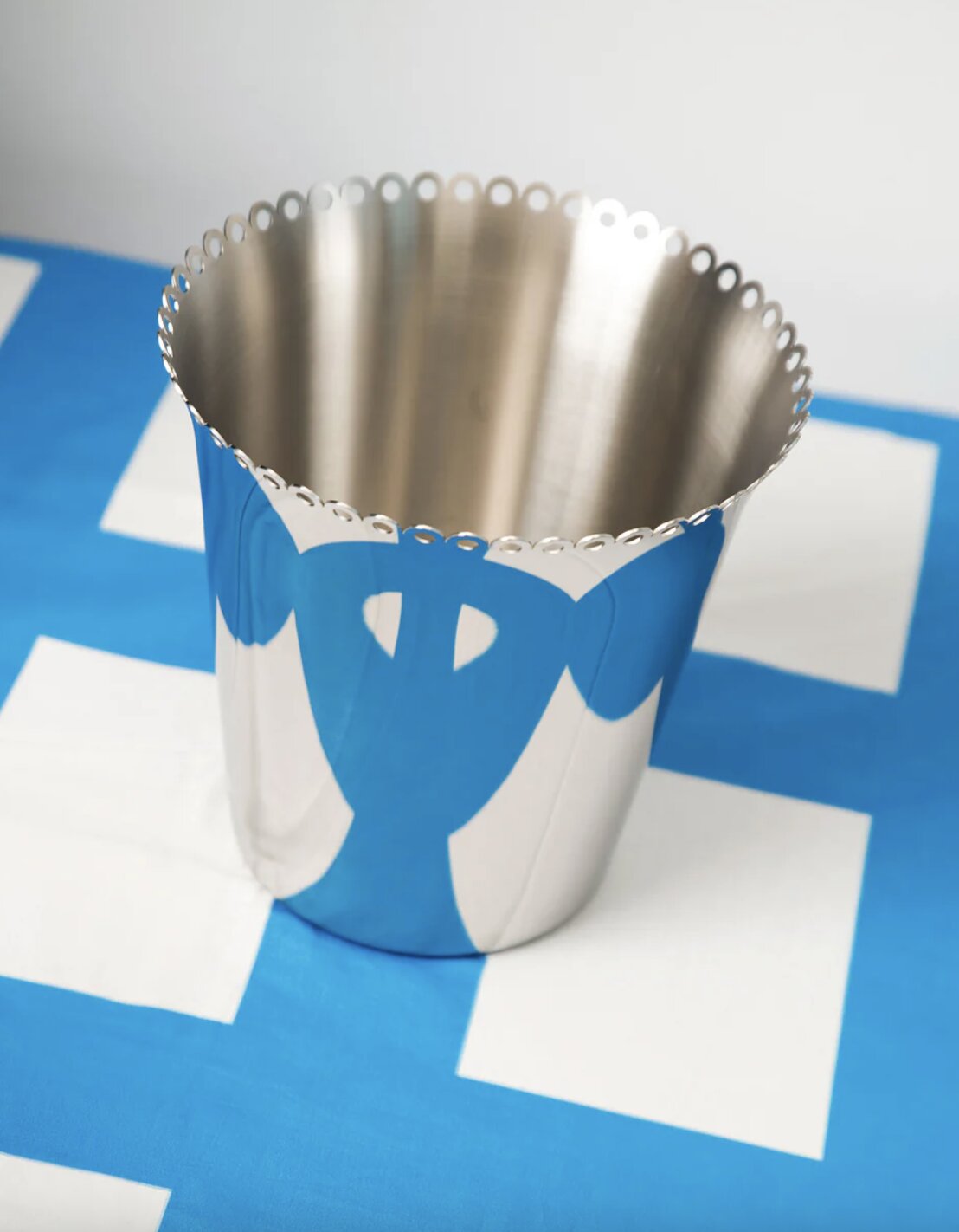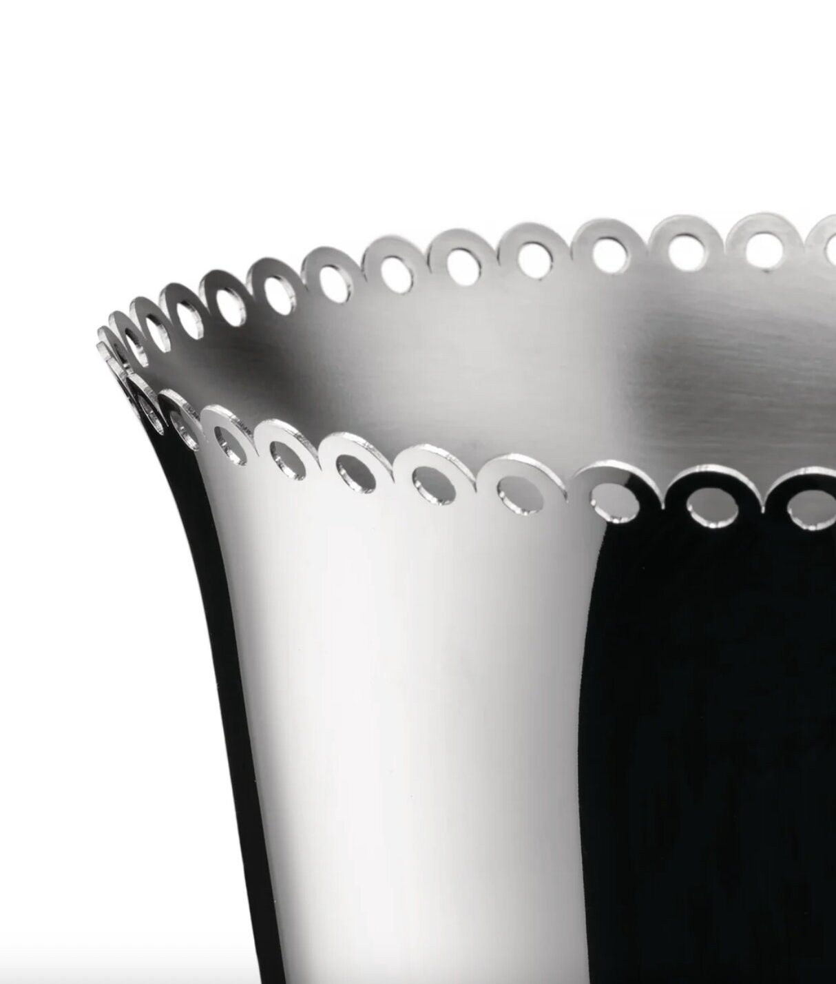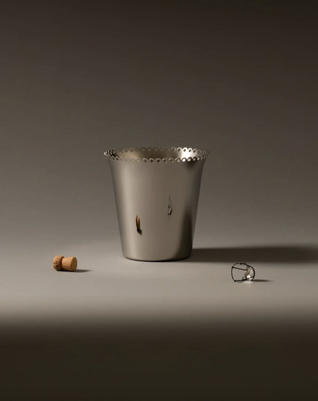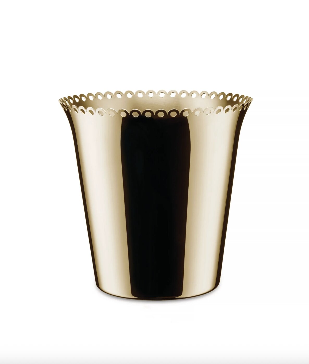 Ice bucket with perforated edge. 18/10 stainless steel sheet with brass PVD coating.