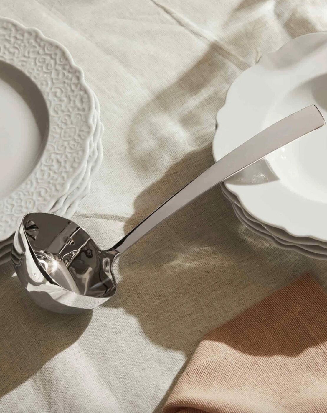 Ladle in 18/10 stainless steel with relief decoration.