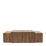 Тази масичка за кафе излъчва топлина и характер със смесените си цветове на дървото и красивите синини, които правят всяка масичка уникална. Уникалният дизайн се състои от три отделни части: две по-малки, които могат да се плъзгат под по-голямата. Тази интелигентна конструкция съчетава функционалността с естетиката, което прави масичката не само практична, но и привличащ вниманието елемент във всяка всекидневна.