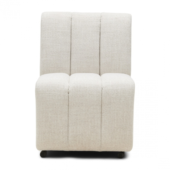 With convenient castors at the bottom and beautifully designed stripes in the fabric, this chair not only adds a touch of elegance to your dining room, but also offers effortless mobility and comfort. A perfect addition for a stylish seating experience.