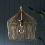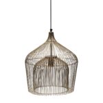 Двойните абажури на висящата лампа Manhattan са изработени от желязо и материалът е ръчно огънат в този стилен абажур. Желязото е в цвят меко злато, също като включената в комплекта таванна шапка.