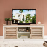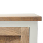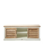 Този красив шкаф за телевизор е функционален, а освен това привлича погледите в интериора ви. Тази мебел е изработена от мангова дървесина – издръжлив вид дърво. Шкафът за телевизор има две врати и отворена част. През затворените врати можете да съхранявате вещите си, които предпочитате да не се виждат.