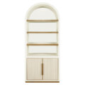 Този шкаф, библиотека предлага перфектен баланс между елегантност и практично място за съхранение. Леко извитият силует е украсен с оребрена кадифена тапицерия. Зад двете си врати, просторното отделение с рафтове осигурява достатъчно място за съхранение. Изисканото бяло покритие и дръжките в месингов цвят добавят нотка блясък, като същевременно поддържат минималистичен и шикозен дизайн. Шкафът Тivoli съчетава стил и функционалност, което го прави идеален за всяка модерна всекидневна или трапезария.