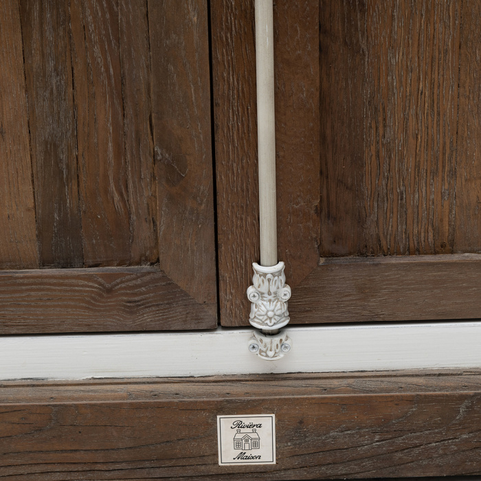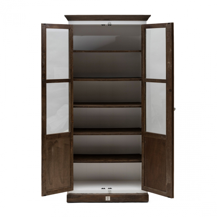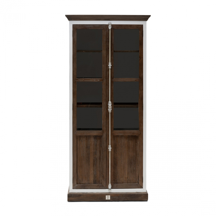 Стъкленият шкаф Driftwood има дървена рамка от бяла топола, която красиво контрастира с дървото Driftwood. Тази дървесина, със здрав характер, идва от преработени стари врати на плевня от Индия.