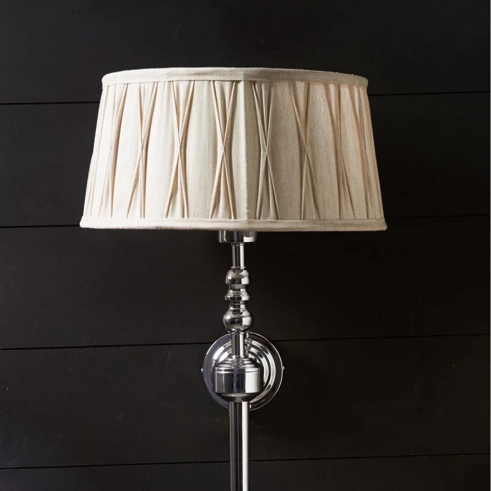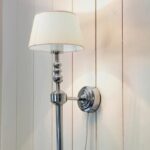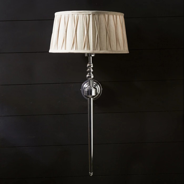 Тази класическа стенна лампа прилича на фенерче. Тънките форми придават на лампата елегантен вид. Абажурът не е включен.