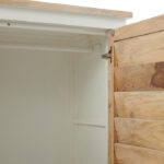 Това е гардеробът от серията Pacifica – линия с поразително красиви мебели от боядисано в бяло дърво и естествена дървесина от манго. Това, което е страхотно за този гардероб, е, че освен достатъчно място за подреждане, той разполага и с просторна секция за закачалки. И както винаги, вратите се затварят с плавен механизъм за плавно затваряне. Тази серия предлага различни видове мебели.